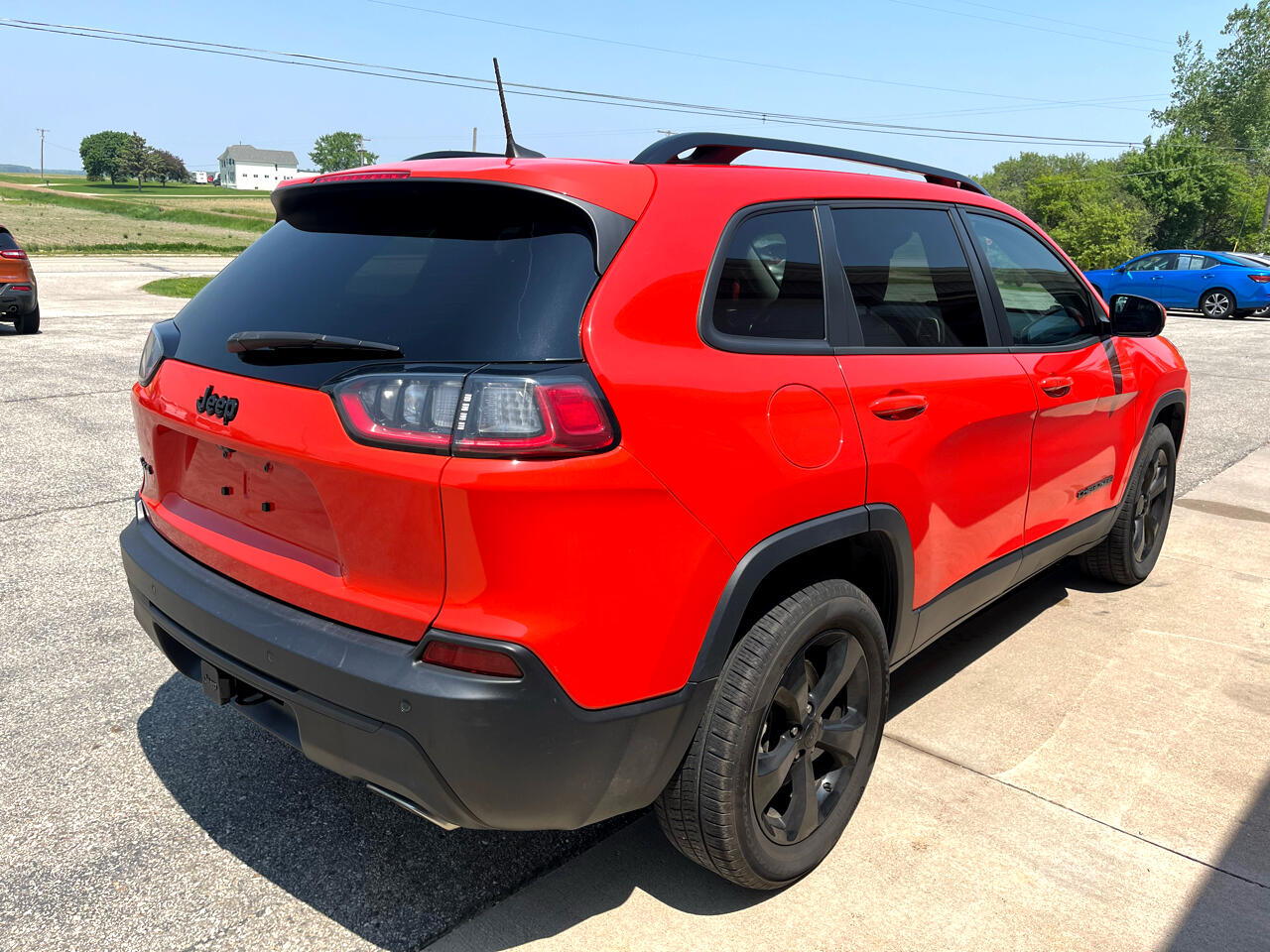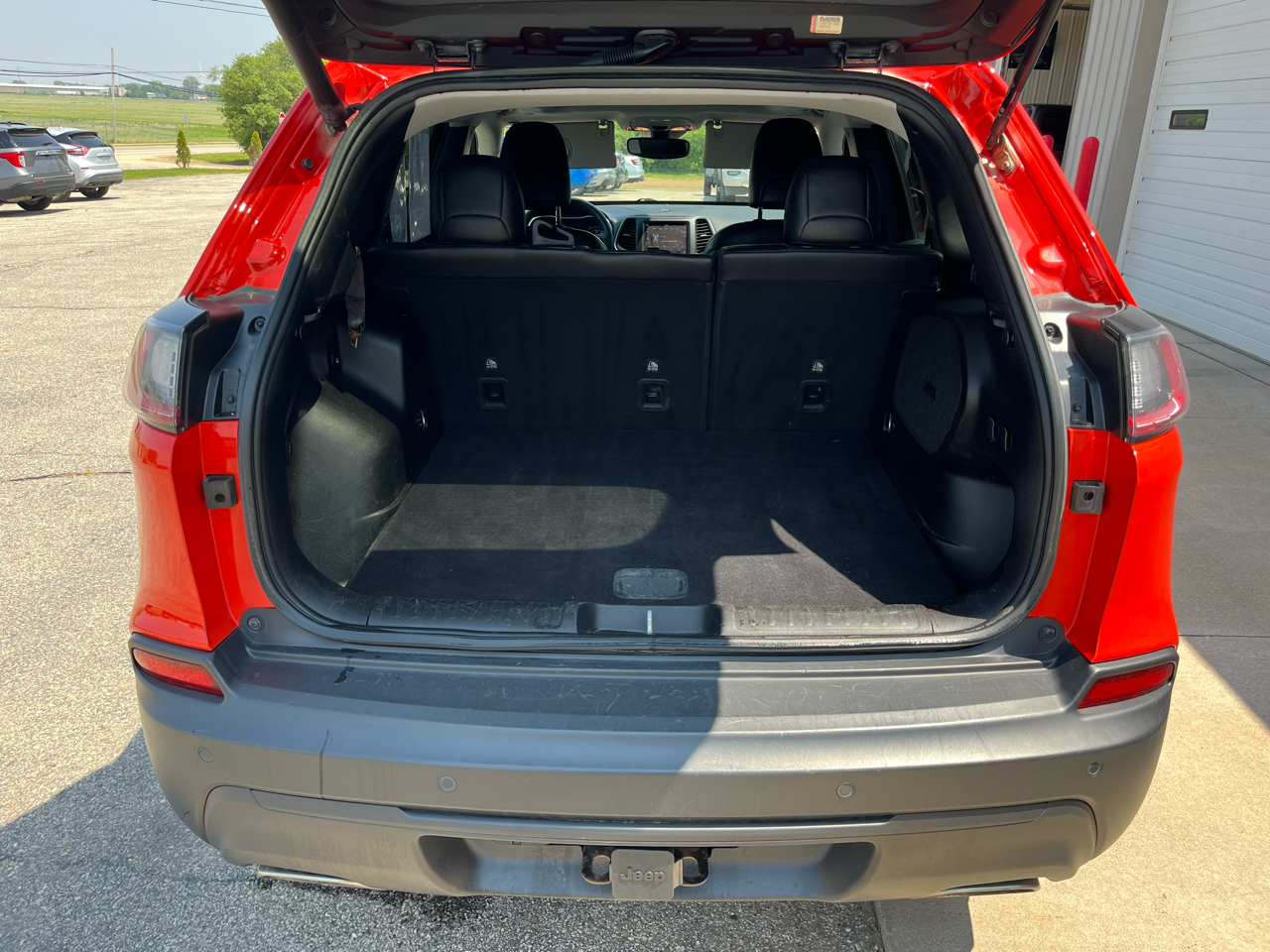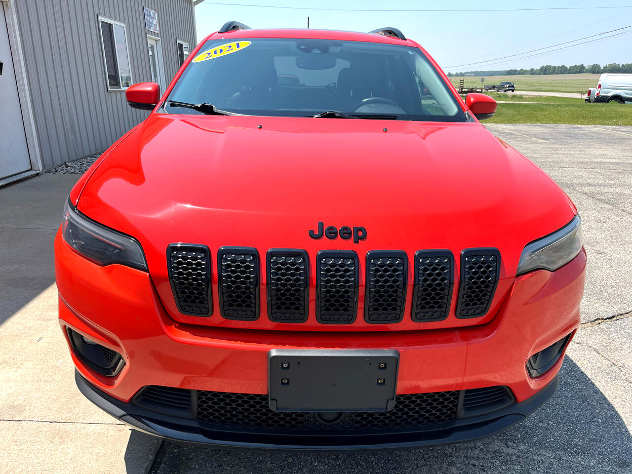 The 2021 Jeep Cherokee Latitude Lux features include: 3.2-liter Pentastar V6 engine, 9-speed automatic transmission, 4WD (Jeep Active Drive I), leather-trimmed seating, heated front seats, power-adjustable front seats with power lumbar support, heated steering wheel, dual-zone automatic climate control, 8.4-inch Uconnect touchscreen infotainment system, Apple CarPlay and Android Auto compatibility, blind-spot monitoring, rear cross-traffic alert, full-speed forward collision warning with active braking, lane departure warning with lane keep assist, rain-sensing windshield wipers, windshield wiper de-icer, LED lighting, push-button start, remote start, and a backup camera.