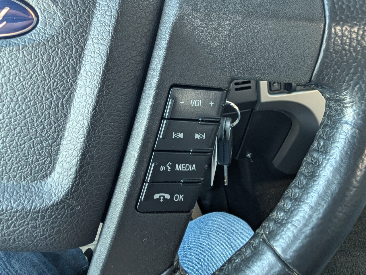 Cloth 40/20/40 split front bench, rear 60/40 flip-up bench, power windows and door locks, cruise control, air conditioning, tilt/telescoping steering wheel, SYNC with Bluetooth/USB and AM/FM/CD, steering-wheel audio controls, AdvanceTrac with RSC, ABS, tire-pressure monitor.