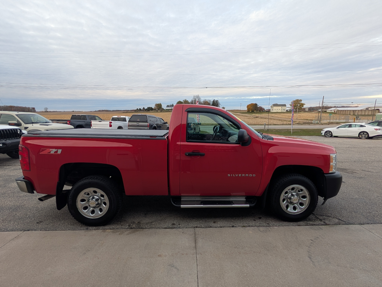 The 2011 Chevrolet Silverado 1500 Work Truck features include: a 4.3L V6 engine, 4-speed automatic transmission, RWD, 6.5ft box, 17-inch steel wheels with brand new winter tires, new brakes and battery, black bumpers and grille, cloth seats, rubberized vinyl floor, 40/20/40 split front bench, air conditioning, aftermarket Kenwood Bluetooth Radio, power windows & locks, cruise control available, tow/haul mode, StabiliTrak stability control with traction control, 4-wheel ABS, tire pressure monitor, removable tailgate, daytime running lamps, OnStar-capable.