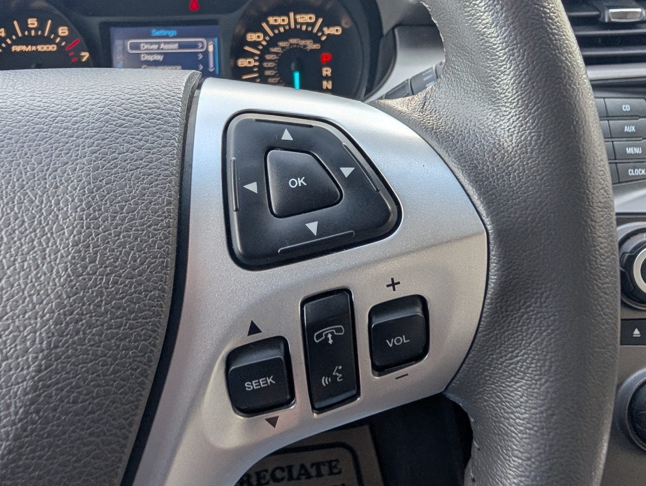 The 2014 Ford Edge SEL features include: a 3.5L V6 (285 hp) engine , 6-speed SelectShift automatic transmission, front-wheel drive, 18-inch alloy wheels, keyless entry keypad, fog lamps, dual exhaust tips, leather seats, power driver seat, dual-zone automatic climate control, SYNC with voice command, AM/FM/CD with Bluetooth and USB, steering-wheel audio controls, 60/40 split-fold rear seat, rearview camera and reverse sensors, power windows and locks, cruise control, tilt/telescoping steering wheel, AdvanceTrac with RSC, traction control, 4-wheel ABS, multiple airbags, tire-pressure monitor.